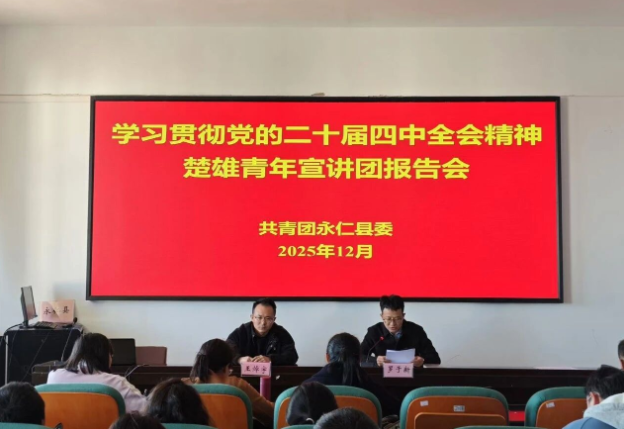 为深入学习宣传贯彻党的二十届四中全会精神,引导干部职工深刻领会全会的重大意义、丰富内涵和实践要求,2025年12月4日,永仁县群团机构联盟邀请楚雄州青年宣讲团成...