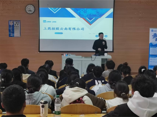 随后,卢彬为药学院师生带来了一场干货满满的专题讲座。他结合自身从基层岗位逐步成长为企业高管的丰富经历,分享了在医药行业深耕多年的职业感悟,并鼓励同学们树立脚踏实地、精益求精的职业态度,在专业领域持续深耕。针对当前医药行业数字化转型、创新药研发加速等发展形势,卢彬进行了深入剖析,帮助同学们清晰把握行业发展脉络和人才需求导向。此外,他还结合企业招聘经验,从简历制作、专业能力展示、面试礼仪等方面,为即将面临实习就业的同学们提供了实用的面试技巧指导,并现场解答了同学们关于职业规划、岗位选择的疑问,赢得了在场师生的阵阵掌声。