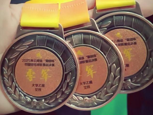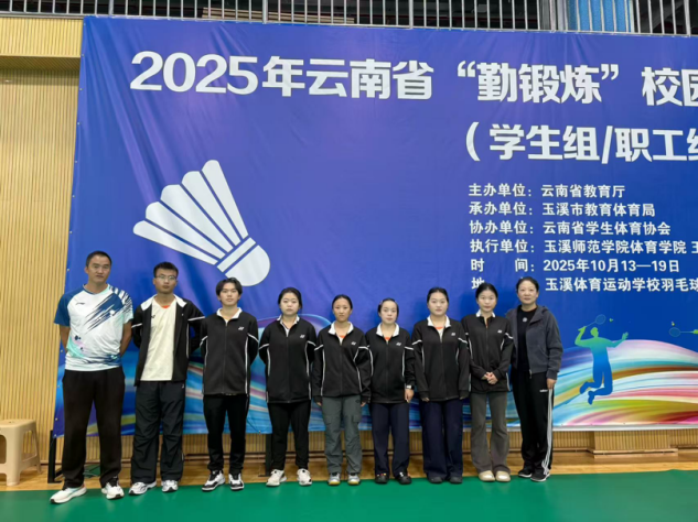 近日,2025年云南省“勤锻炼”校园羽毛球联赛总决赛在云南玉溪体育运动学校圆满收官。我校羽毛球队在李榕、倪留才两位教练的带领下,由杨正娇、孟洣、张阳、陈子琦、胡志宏、周鑫宬、陈和晓、蒲香伶、陈宏增9名同学组成的参赛队伍,凭借扎实的训练功底与顽强的竞技精神,在全省参赛队伍中脱颖而出,成功斩获男子单打季军、第一女双季军、第二女双第五名三项优异成绩,为校争光!