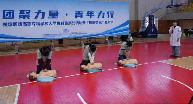 在互动体验区,设有中医药文化体验、解剖绘图大赛优秀作品赏析、“医语争锋”展示、健康知识趣味问答、“心肺复苏”演示等多个区域。同学们在沉浸式互动中感受医药文化的魅力与健康知识的实用价值。